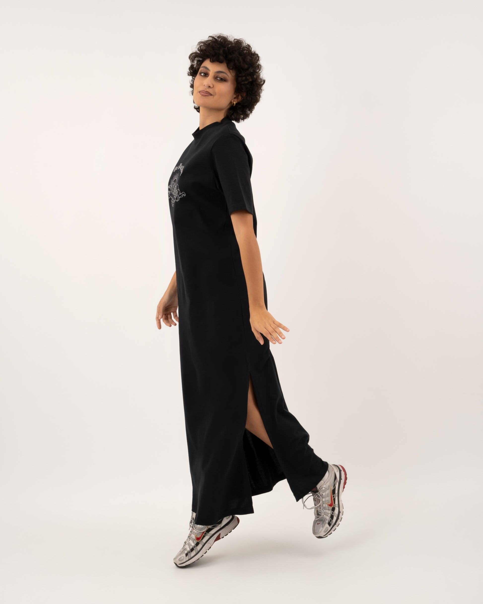 Maxi Dress with embroidery design on the front.
